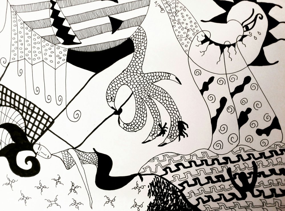 This sketch is trying to present a mixed set of feelings and emotions related to sleep.