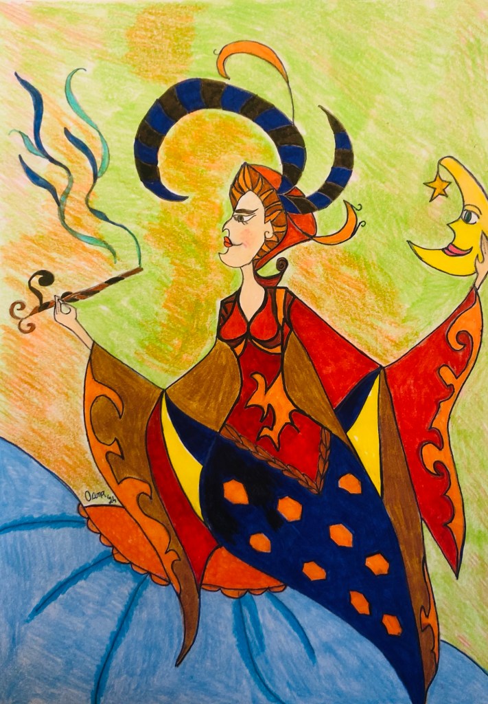Ligia lightened up her cigarette and looked up to the sky. The cigarette smoke formed a fine moon shape that vanished into the darkness, in seconds.