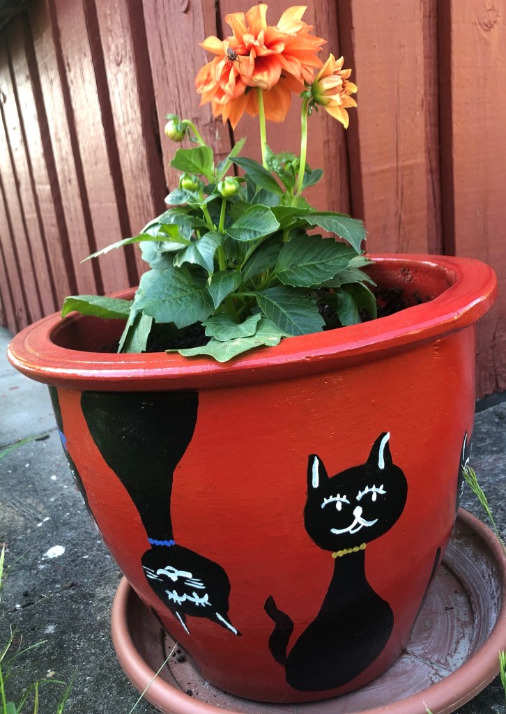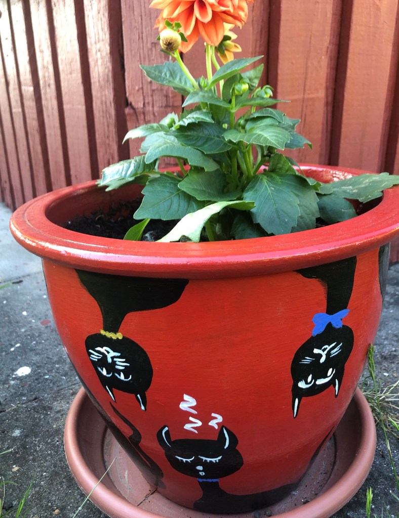 Last year, I have recovered a small garden pot, which was broken. I have glued it togheter… and now see how sweet these cats are giving it a new life!